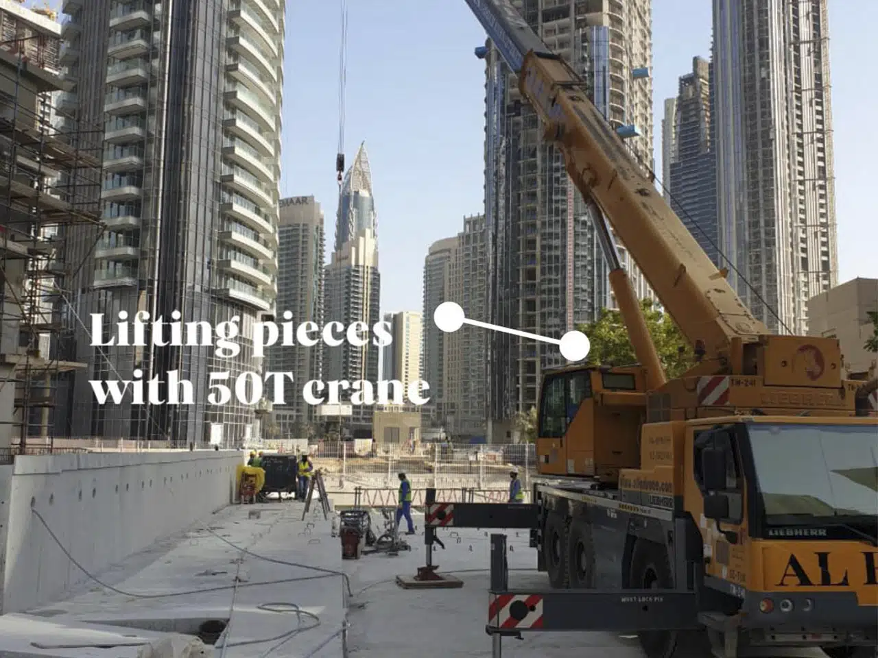 The time frame was very tight, however we accepted the challenges by approving the time frame after the value of our engineering, and taking into consideration all the factors that can affect our time frame from not being able to work at night due to residential area, to moving big trailers and cranes at the boulevard which is full of vip people and a very sensitive area of EMAAR.